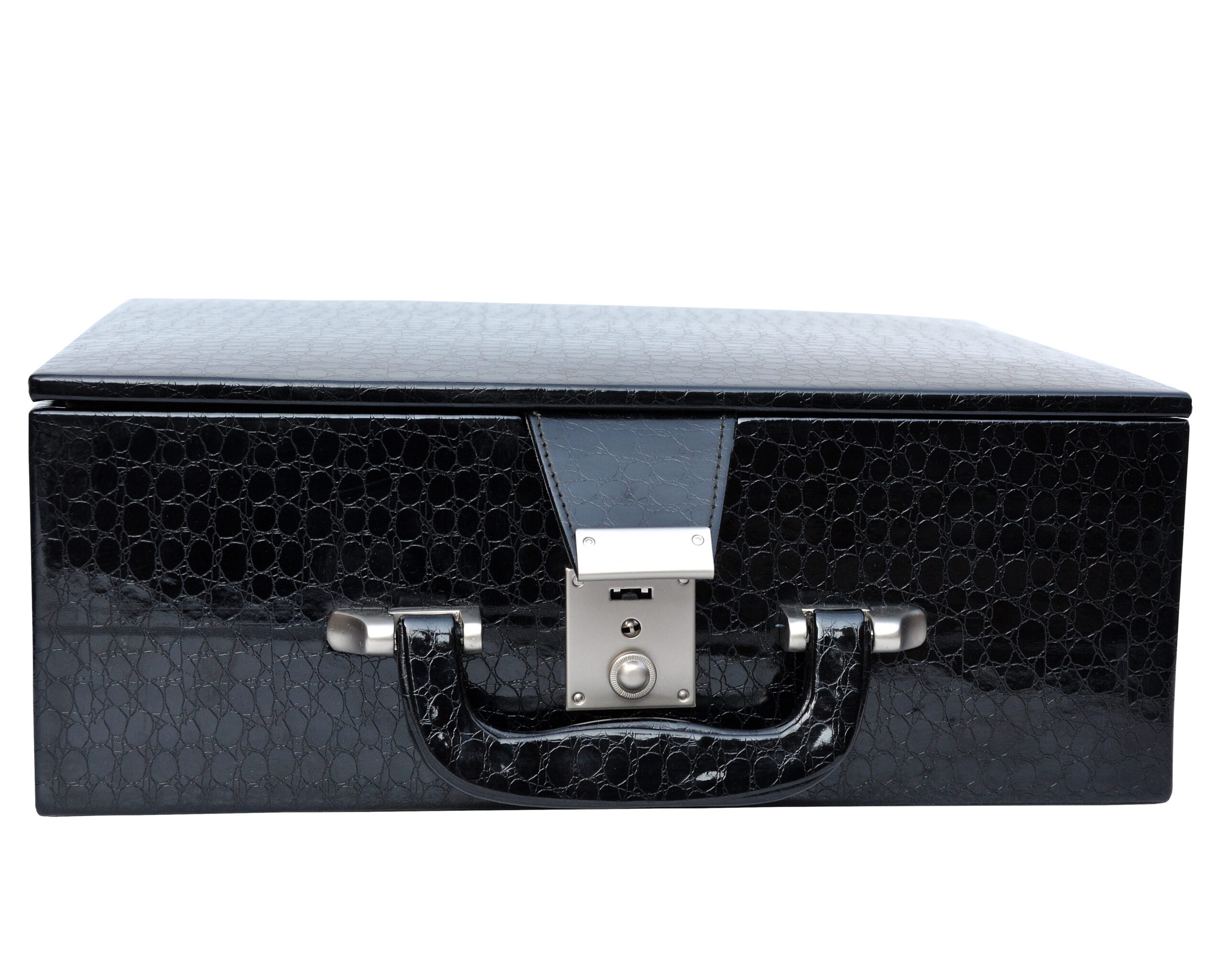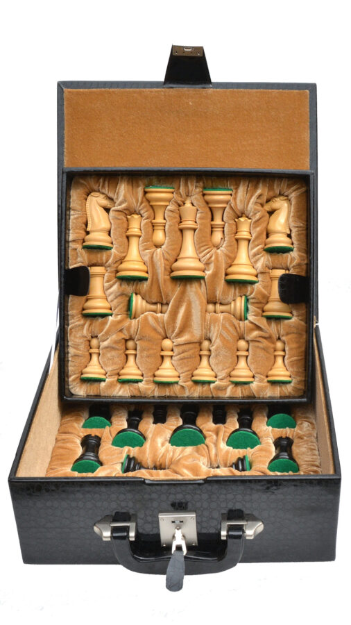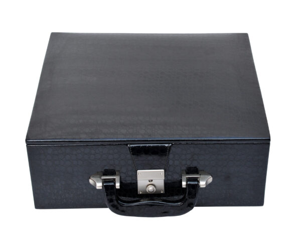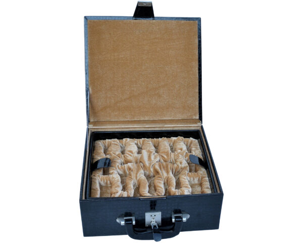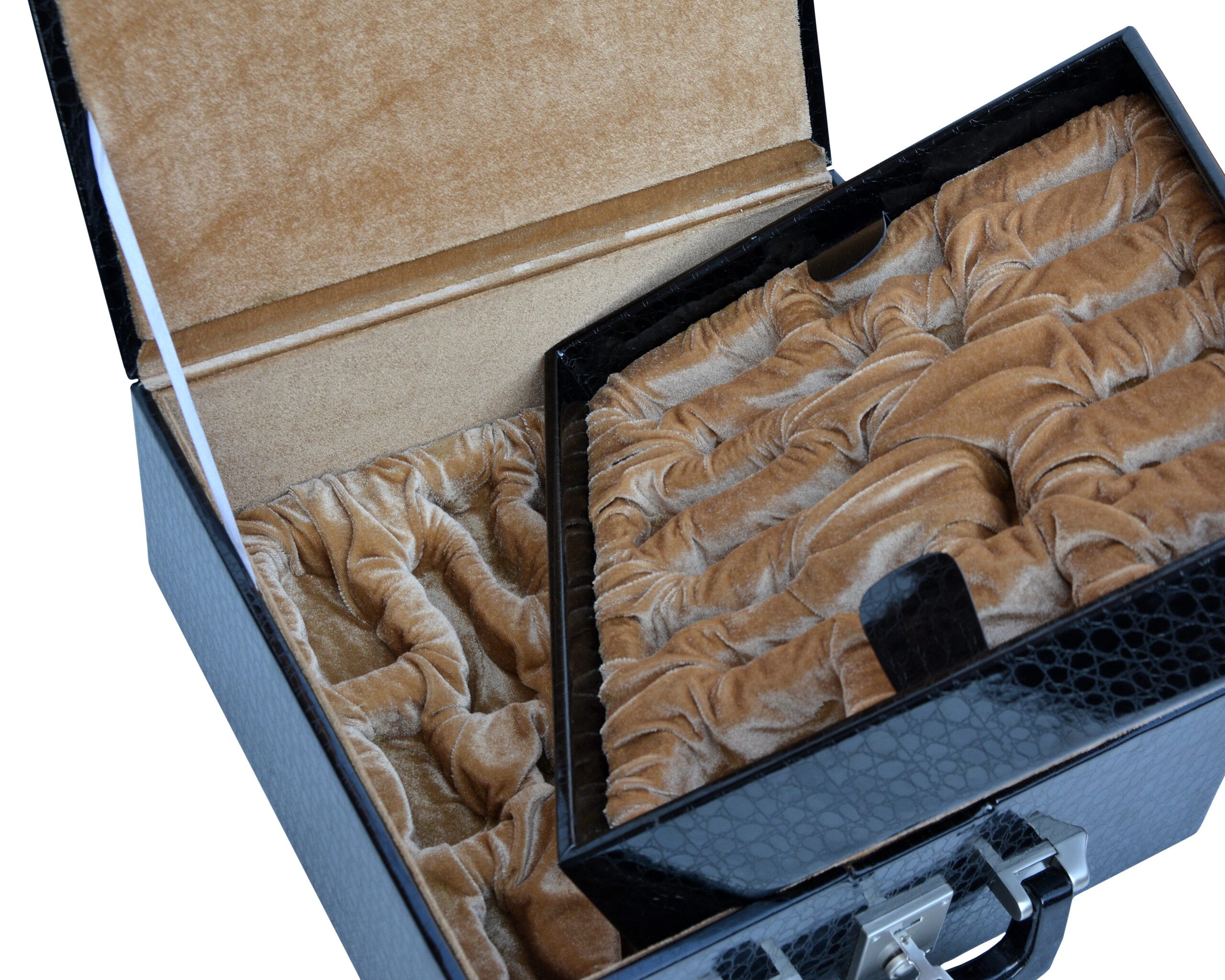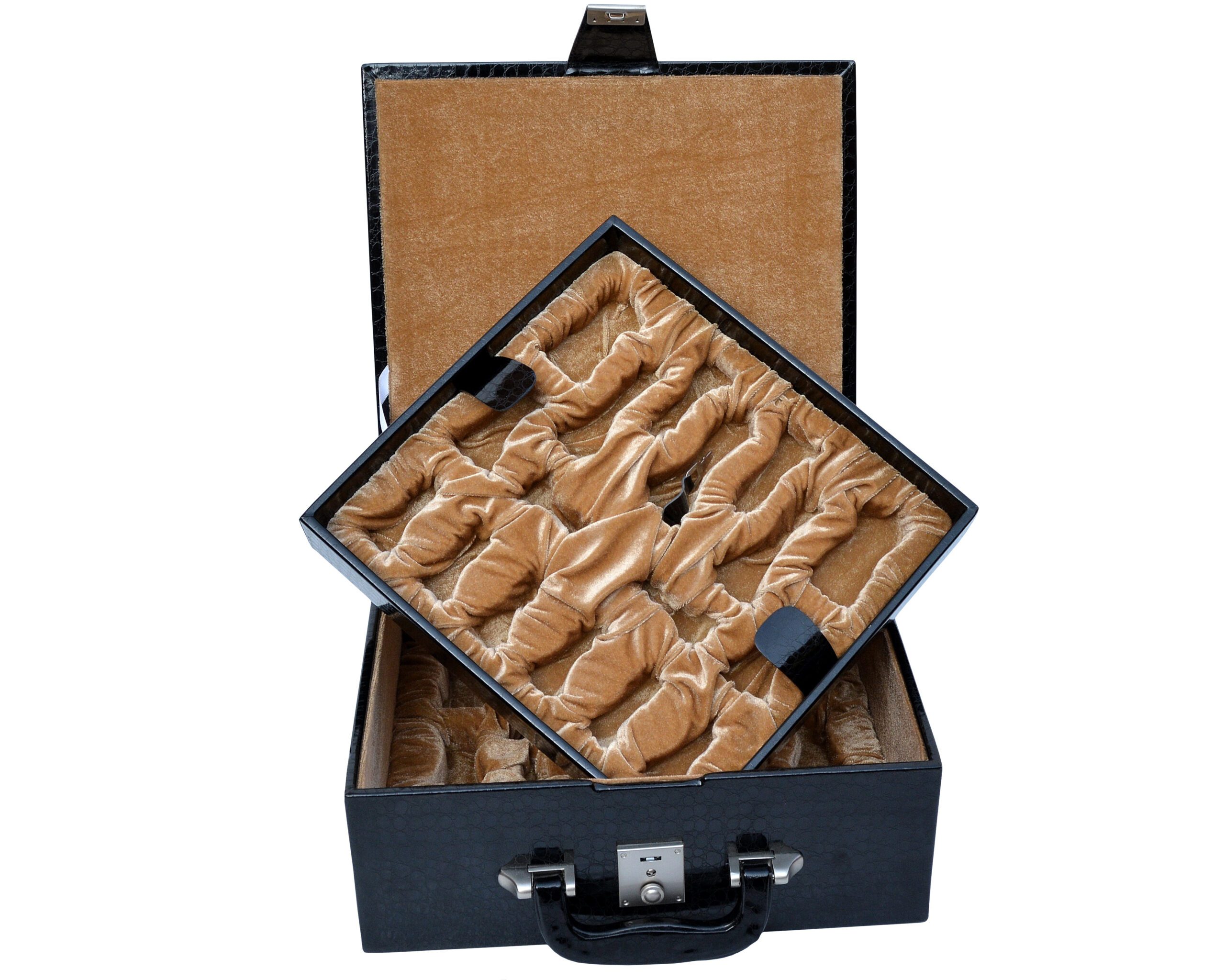 Black Leatherette Chess Set Storage Box Coffer for up to 15″ Chessboard and Slots for Chess Pieces up to 3.0″ CI-2017