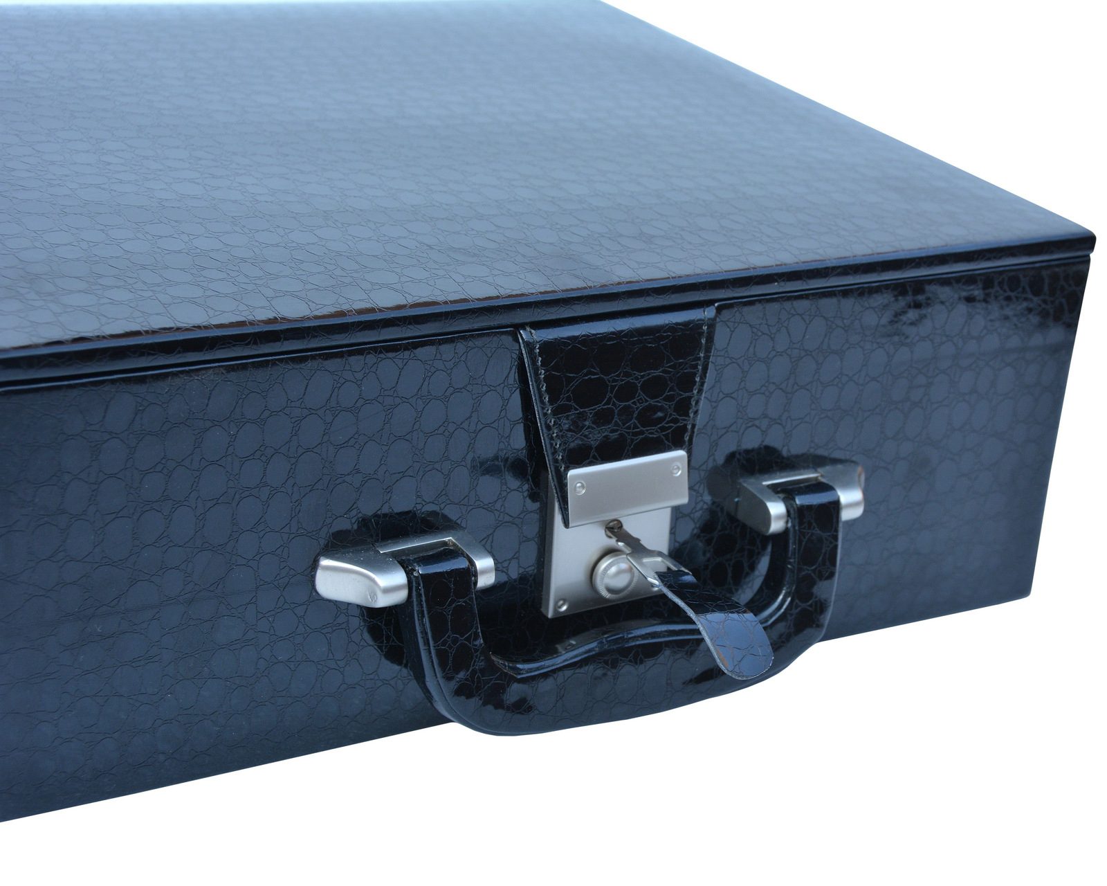 Black Leatherette Chess Set Storage Box Coffer for up to 15″ Chessboard and Slots for Chess Pieces up to 3.0″ CI-2017